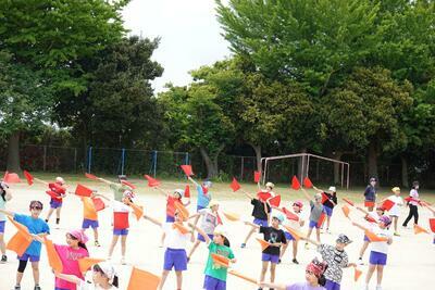 運動会に向けて3.4年生では、ハイタッチダンスを練習しています。