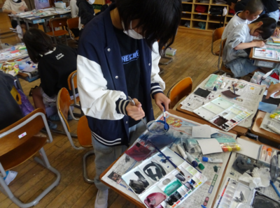 今日は図工の学習で、自分の気持ちや心をどのような模様に表現するのか考えました。