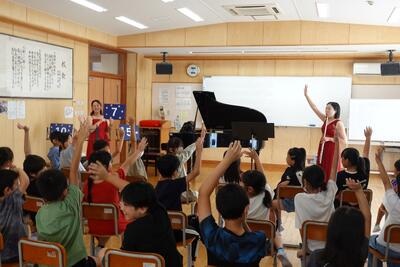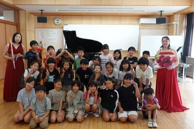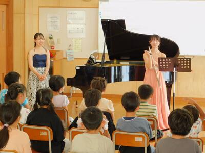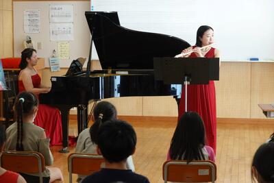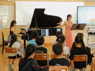プロの音楽家を招き、音楽室でピアノとフルートの演奏を聴きました。