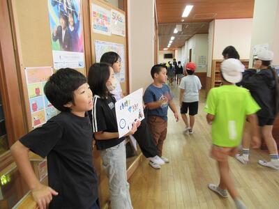 坂本東小をもっともっと良い学校にするために、4年生が「時間を守ろう」と休み時間の後に、児童に呼びかけました。