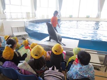 目の前にアシカがやってきて、子ども達は大興奮でした!