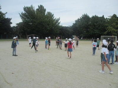 学級で遊びを決めて遊んだり、自由に遊んだりしている子供たちがグランドいっぱいにいました。