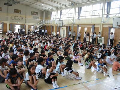 坂本東小学校の最初の終業式が実施されました。