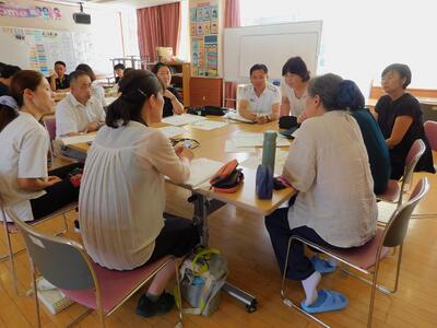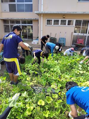 次に職員作業では、学年菜園の整備を行いました。このあと、2学期にむけて研修を行いました。