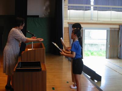 始業式では代表児童の1学期の反省を踏まえて、2学期頑張りたいことの発表がありました。