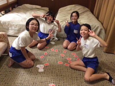 トランプをしたり、テレビのバレーボールの応援をしたり、おもいおもいの時間を過ごしています。