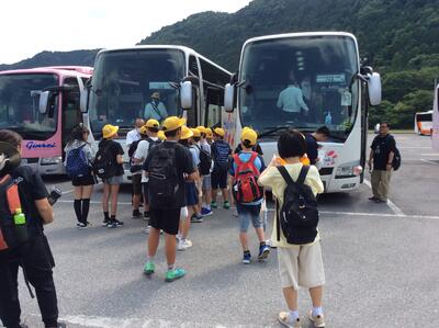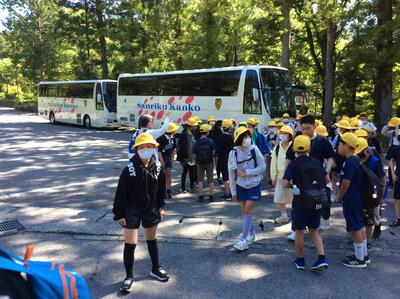 1泊2日の修学旅行を終えて、坂本東小学校に戻ってきました。