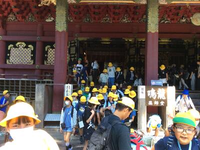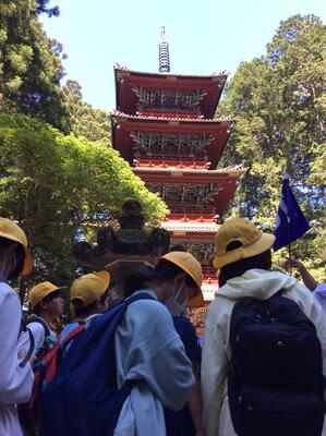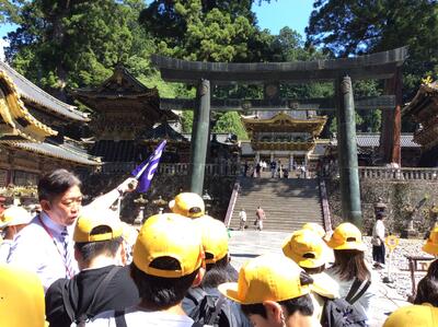 2日目の最初の見学地、東照宮です。児童たちは事前に調べたことのついて、班別行動で確かめていました。