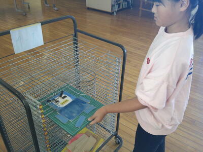 今日の授業では、切った木材に色を塗りました。集中して取り組み、綺麗に色を塗ることができました。