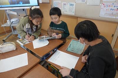 3年生 元気学習(総合的な学習)の様子 投稿: 作成者 (14:58) 3年生から新しく始まった元気学習(総合的な学習)。 3年生では、「地域のすてきを見つけよう」というテーマで1年間調べてきたことをまとめる活動を しています。 これまで様々な場所を訪れて知った地域のすてきな写真をグループでえらんでいました。 発表にむけて着々と準備が進んでいます。 Tweet -