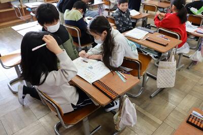 そろばんを使った算数の授業の様子 投稿: 承認者 (03/16) 3年生によるそろばんを使った算数の授業の様子です。 先生や地域の方からそろばんの数の表し方や計算の仕方を教わりました。 一生懸命授業に取り組む児童の姿が見られました。 Tweet -