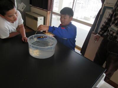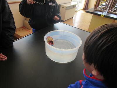 理科室で遊ぼう 投稿: 作成者 (03/18) 昨日と今日の昼休みは、4年生を対象とした理科おじさんによる理科室で遊ぼうが開催されました。 「進め!ポンポン船」というタイトルで、「熱したときの水のようす」の学習の応用したものでした。 船の中に火の付いたロウソクを組み込むことで、ポンポンと音を出しながら走り続ける船を、興味をもって楽しそうに眺めていました。 Tweet -