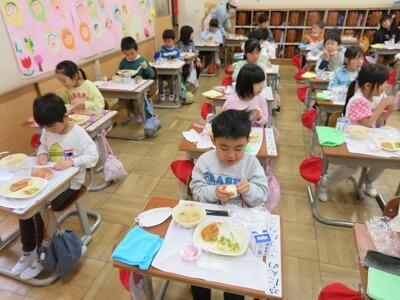 初めての給食 投稿: 承認者 (09:42) 1年生 初めて給食を食べました 1年生にとって、小学校で初めて食べる給食でした。ドキドキしながら準備をし、「おいしい」とにこにこで食べている姿に嬉しくなりました。 これからも、おいしい給食をみんなで食べていきましょうね。 0 -