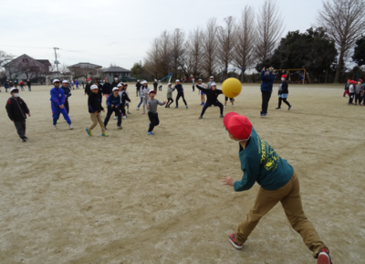 3年生と一緒にドッジボールをして楽しく遊びました。