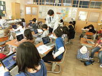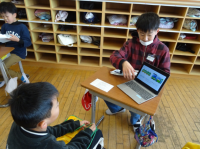 ICT支援員の先生にサポートしてもらいながら、算数科の授業でプログラミング学習を行いました。