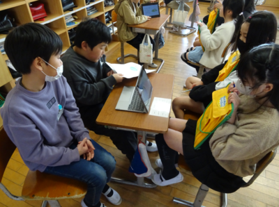 4年生は、5年生の発表内容を聞いて、真剣にメモをしたり質問をしたりしていました。